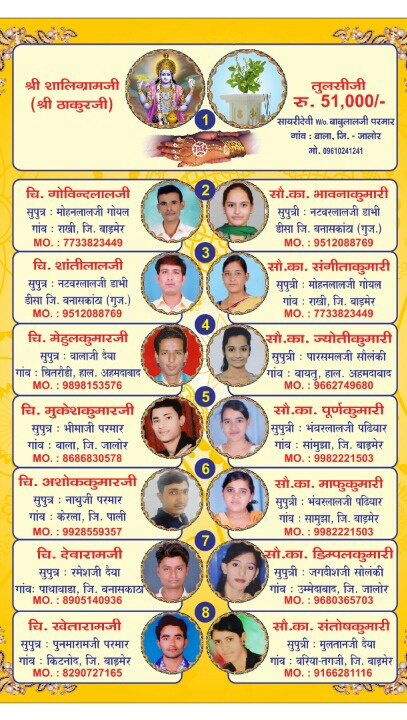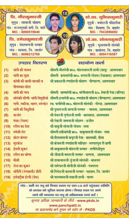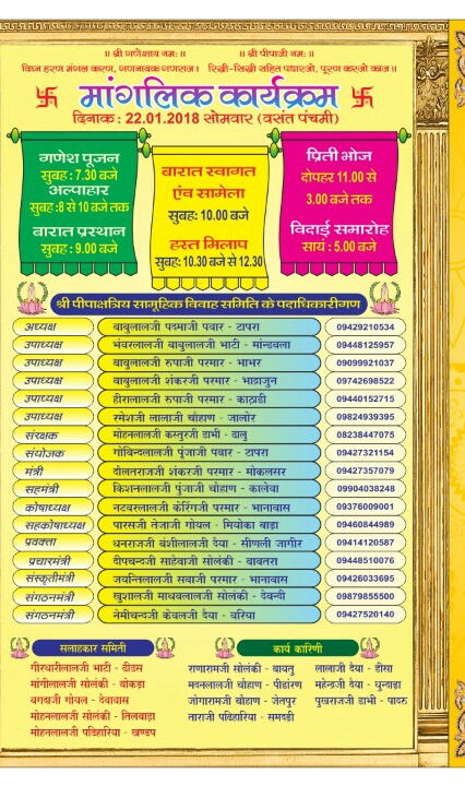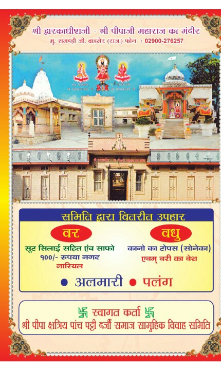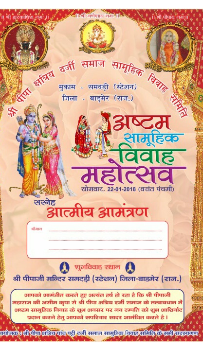 श्री पीपा क्षत्रिय पांच -पट्टी दर्जी समाज सामूहिक विवाह समिति अस्ठम सामूहिक विवाह पत्रिका